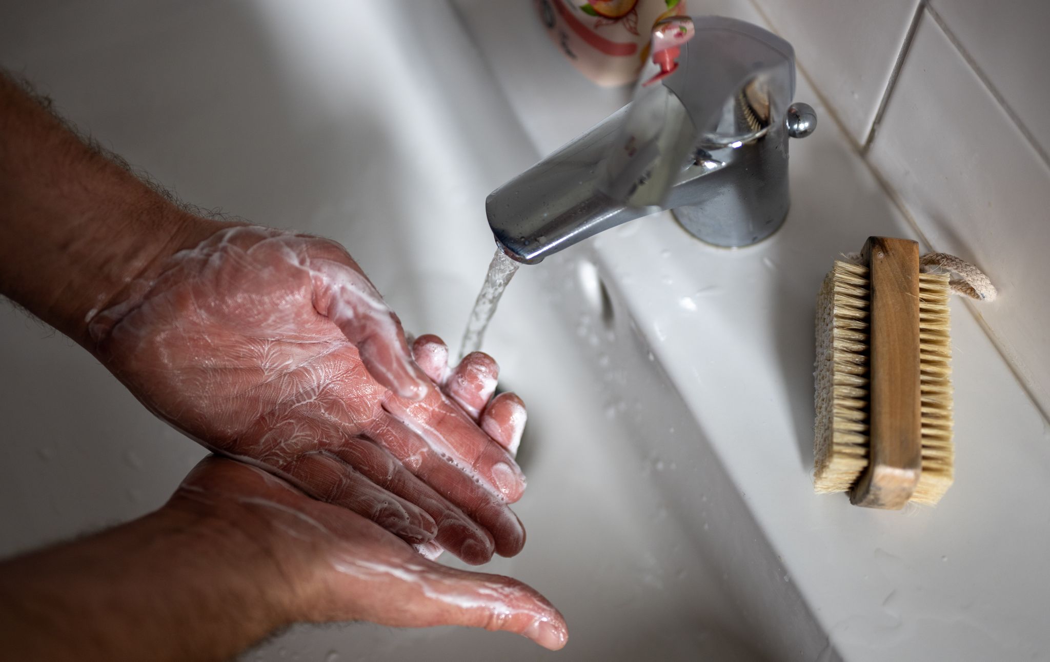 Wer die Hände wäscht, beseitigt Keime.