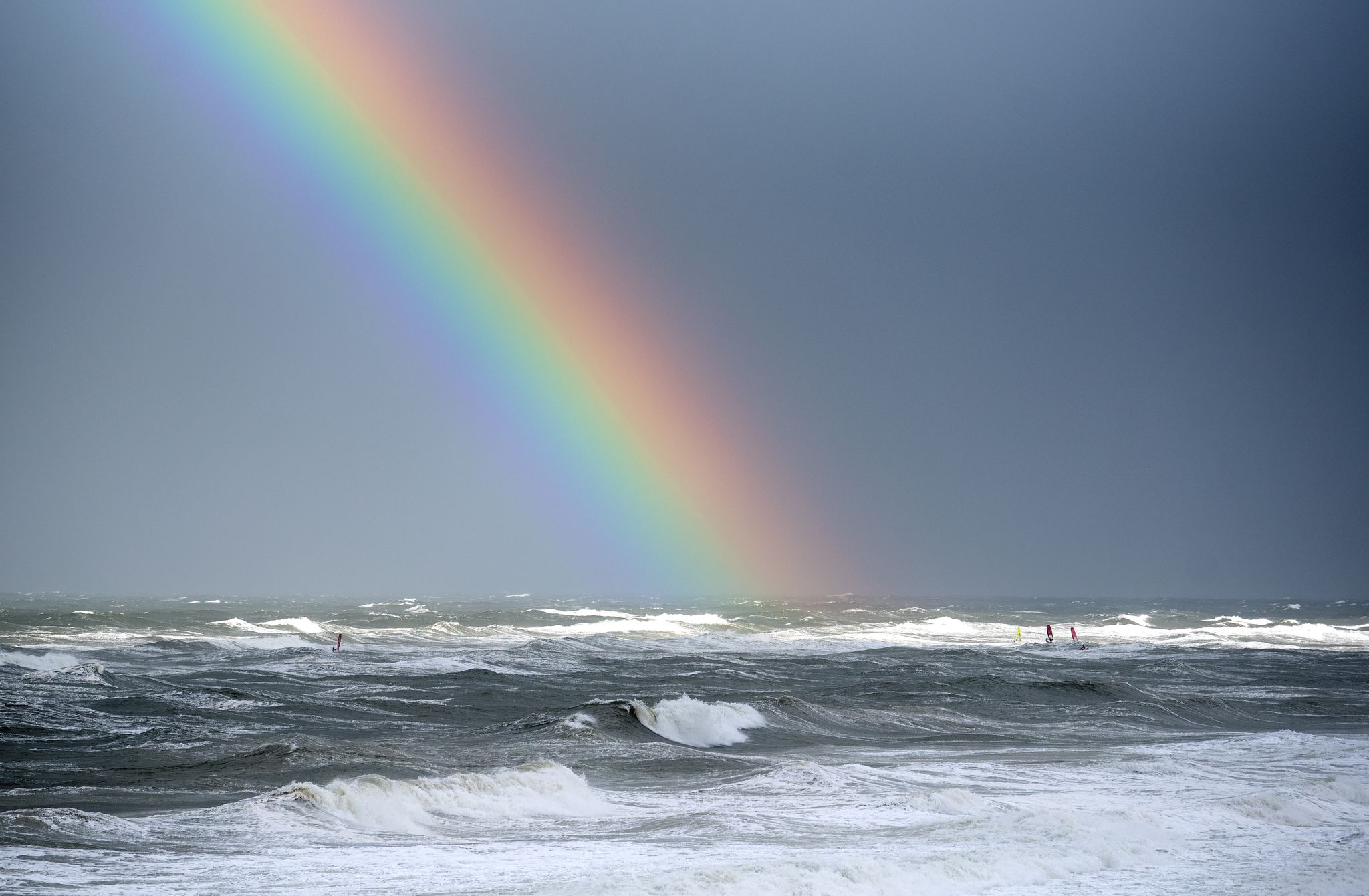 Dass das Wasser so hoch steigt, liegt unter anderem am starken Wind. Den nutzten einige Leute: An der Küste der Nordsee-Insel Sylt ritten Surfer über die Wellen. Am Montag soll der Wind im Norden Deutschlands übrigens wieder schwächer sein, sagen Wetterfachleute.