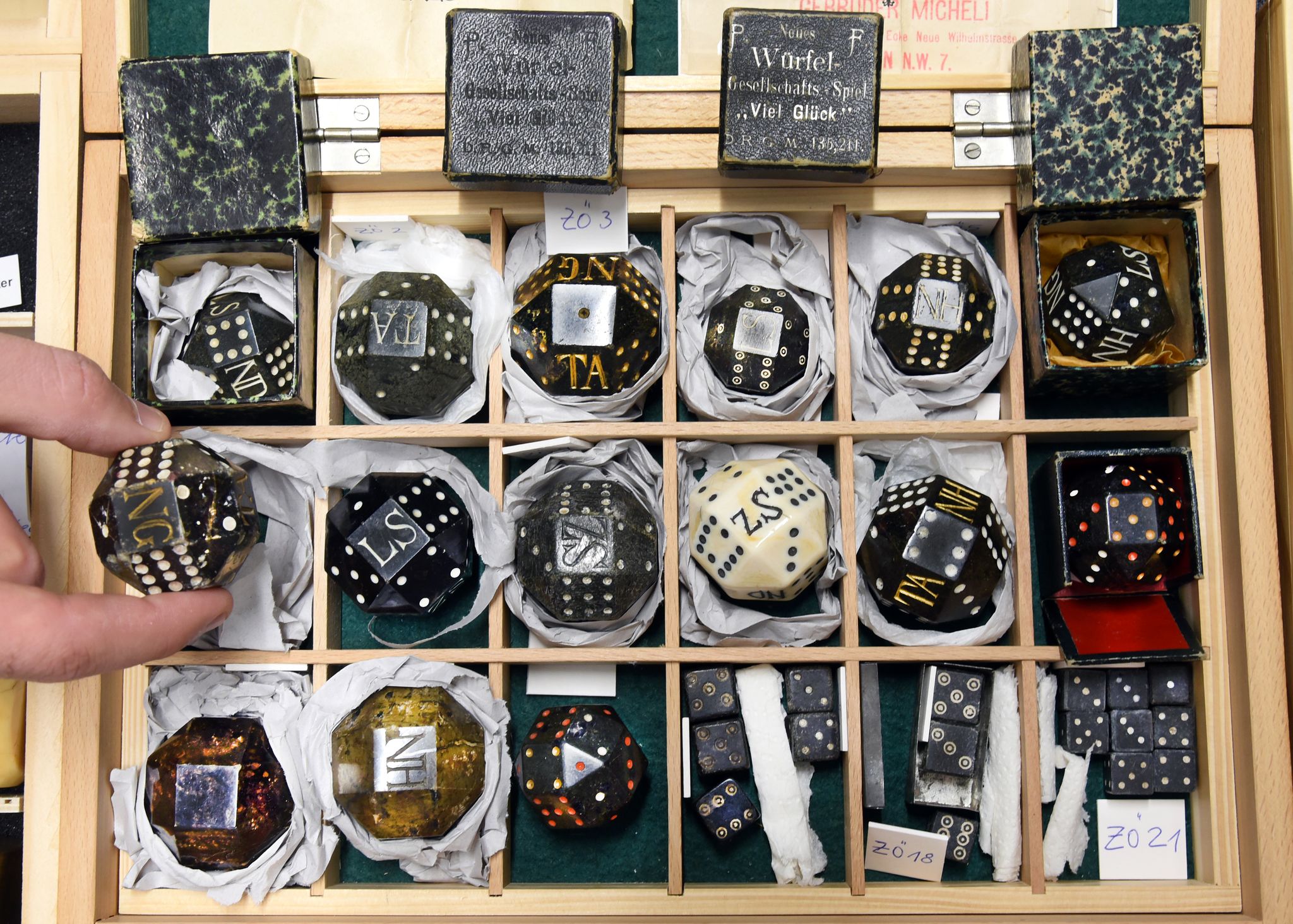 Außerdem besitzt der Sammler Würfelspiele, Würfelautomaten und Würfelkreisel. Auch uralte Würfel sind dabei, zum Beispiel welche aus Rinderknochen.